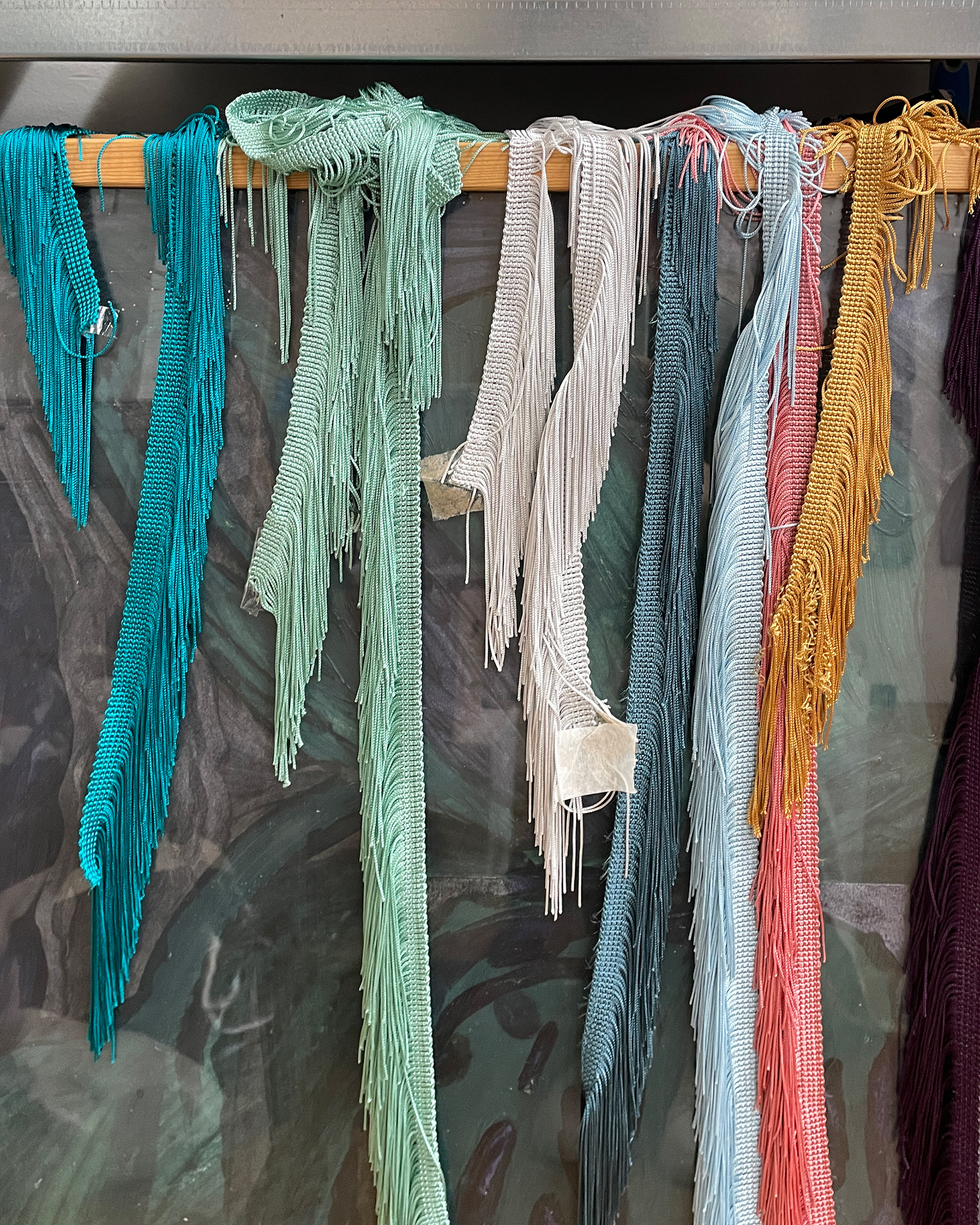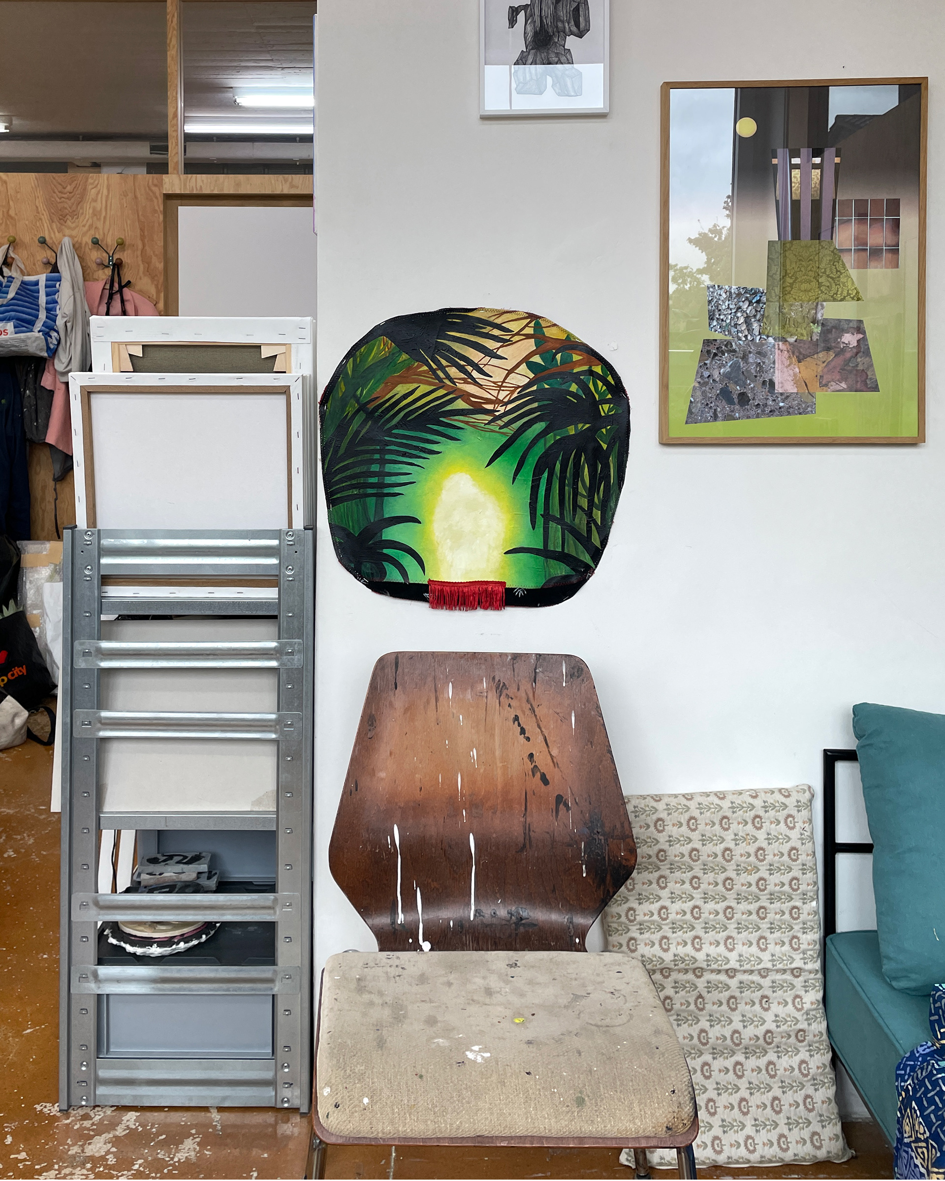 IMATELIER: What about your choice of materials? You have a treasury of different offcuts, threads, and a sewing machine here. I also notice that your new works clearly depart from flat surfaces. Is there a special significance to texture and materiality in your practice?
